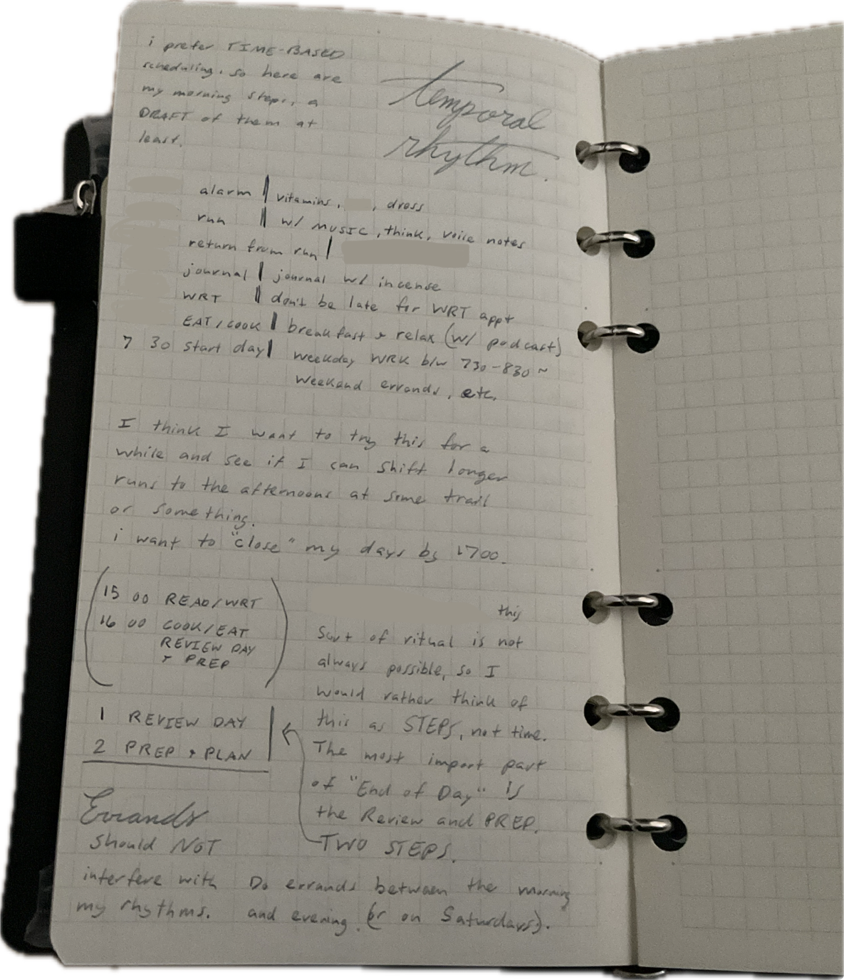 The notebook itself does not solve problems. The writing in my notebooks is a step forward, as it helps me externalize my thoughts and detangle them. The way that I act on the writing is the final step toward addressing issues.